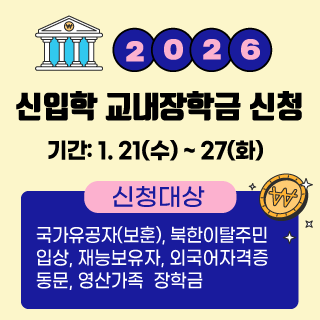기타 지혜로운 가치를 배우는 대학, 지혜로운 당신을 만드는 대학 메인으로 이동 기타 학교소개 입학 대학/대학원 대학생활 커뮤니티 공익신고/청탁금지 및 행동강령 위반신고 사이트맵 왜 와이즈유를 주목하는가 대학자체평가 행정정보공개 개인정보처리방침 영상정보처리기기 운영 및 관리방침 영리목적의 광고성정보전송거부 부정청탁&금품수수 신고 및 문의 사이트맵 통합검색 홈페이지오류알림 뉴스레터 수신거부 영산대학교 광고를 찾아라! SNS 공유하기 페이스북 트위터 블로그 인쇄 홈으로 기타 기타 왜 와이즈유를 주목하는가 대학자체평가 행정정보공개 정보공개제도안내 정보공개접수처 및 관련서식 사전정보공개 정보목록 관계법령 개인정보처리방침 개인정보처리방침 개인정보처리방침 이전자료 개인정보제공내역공지 영상정보처리기기 운영 및 관리방침 영리목적의 광고성정보전송거부 부정청탁&금품수수 신고 및 문의 공지사항 서식자료실 권익위사례해설 관계법령 질의응답게시판 동영상자료실 위반사례신고 국민권익위원회 공무수행사인 현황 사이트맵 통합검색 홈페이지오류알림 뉴스레터 수신거부 영산대학교 광고를 찾아라! 사이트맵 학교소개 건학이념과비전 건학이념과 인재상 특성화전략 비전과 목표 특성화전략(이전) 연혁·상징 연혁 상징 UI 템플릿 교가·응원가 현황 기구표 학과소개 학칙·규정 학칙·규정 의견수렴 교류·협력 국제교류 산학협력 국내학술교류대학 자매고교 예결산·자료실 통계연보 행정감사결과공개 캠퍼스안내 캠퍼스맵 해운대캠퍼스 양산캠퍼스 스쿨버스 해운대캠퍼스 부산방면 울산방면 창원·장유·김해방면 해운대캠퍼스-양산캠퍼스순환 양산캠퍼스 부산방면 울산방면 물금방면 창원김해양산방면 양산캠퍼스-서창순환 양산캠퍼스-해운대캠퍼스순환 오시는길 해운대캠퍼스 양산캠퍼스 해운대캠퍼스 주차요금표 열린총장실 총장 인사말 이력보기 연설문 기고문·인터뷰 연구실적 동정 포토갤러리 업무추진비 사용명세 학교법인 이사장실 인사말 이력보기 동정 언론보도 포토갤러리 설립목적·건학정신 연혁 현황·조직도 임원 및 이사회 회의록 임원 친족관계 교직원 법령상위원회 대학평의원회 목적 및 설립근거 평의원 현황 대학평의원회 규정 대학평의원회 회의록 등록금심의위원회 기금운용심의회 생명윤리위원회 IRB소개 IRB 심의 안내 자료실 공지사항 영산법률문화재단 재단 및 문화상 소개 출연자소개 입학 대학 대학원 International Application 한국어교육센터 평생교육원 원격평생교육원 평생교육원(양산캠퍼스) 평생교육원(해운대캠퍼스) 교육연수원 인사말 프로그램 법과인문학아카데미최고위과정 양산인문학과정 디지털 혁신·미래비전 최고위과정 대학/대학원 대학 학과소개 대학원 일반대학원 부동산대학원 사회과학대학원 한국문화대학원 관광·경영대학원 미용예술대학원 스포츠산업대학원 명예박사 수여자 대학생활 학사 수업 수강편람 수강신청·재수강·계절학기 개설교과목 · 강의시간표 조회 수강신청방법 수강신청 희망과목 담기 수강편람 교직과정 성적평가·조회·정정 강의평가 유고결석 스마트전자출결 강의계획서 조회 학사일정 등록금안내 등록금안내 등록금납부(KOREAN) 등록금납부(ENGLISH) 학적 다전공·전과 휴학·복학 자퇴·제적·재입학 졸업·조기졸업·이수학점 졸업인증제 와이즈 핵심역량 인증제 학사 서식·자료실 증명서 발급 증명서 발급방법 증명서 종류 증명서 발급 대상자 국제학생증 발급 장학·학자금 장학 대학생 신입생 정부장학·학자금 국제교류 프로그램 안내 후기 취업·진로개발(YCMP) 학습지원 영어교육 자기주도학습·비전·리더십 독서·글쓰기 클리닉 도서관 공직시험 지원 로스쿨 진학 지원 학생활동.병무.편의 학생회.동아리.언론사 양산캠퍼스 해운대캠퍼스 병무.예비군 병무 예비군 편의.복지.기숙사 교내식당 주간메뉴 온라인 서비스 천원의 아침밥 시설사용안내·신청 풋살경기장 잔디운동장 창의설계실 신청하기 예약현황 학부모 참여 학부모 참여 소개 학교생활 안내 내 자녀 정보 학부모와 함께하는 교육 학년별 학습 및 대학생활 지도 학년별 진로지도 학부모 참여 프로그램 커뮤니티 공지사항 와이즈유 이야기 보도자료 뉴스&행사 언론속와이즈유 자랑스런 와이즈유 대학광고 입시홍보영상 이미지 생활정보·Q&A 학사 Q&A 영산사랑게시판 학사운영건의함 영산마켓 분실 · 습득물 분실물 습득물 숙박 카풀 대학발전기금 대학뉴스레터 기타 왜 와이즈유를 주목하는가 대학자체평가 행정정보공개 정보공개제도안내 정보공개접수처 및 관련서식 사전정보공개 정보목록 관계법령 개인정보처리방침 개인정보처리방침 개인정보처리방침 이전자료 개인정보제공내역공지 영상정보처리기기 운영 및 관리방침 영리목적의 광고성정보전송거부 부정청탁&금품수수 신고 및 문의 공지사항 서식자료실 권익위사례해설 관계법령 질의응답게시판 동영상자료실 위반사례신고 국민권익위원회 공무수행사인 현황 이메일무단수집거부 사이트맵 통합검색 홈페이지오류알림 발전기금 약정서 2021년 근로
